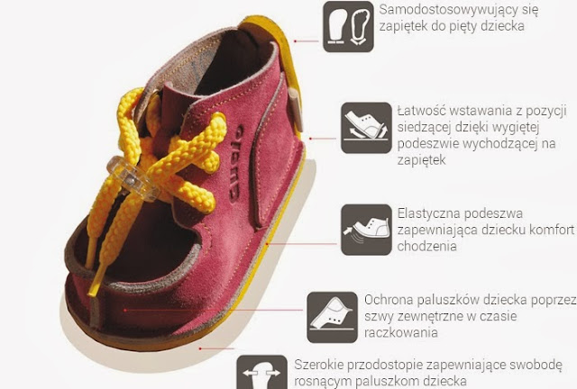 buciki wykonane z lekkich i naturalnych materiałów, pozwalających nóżce