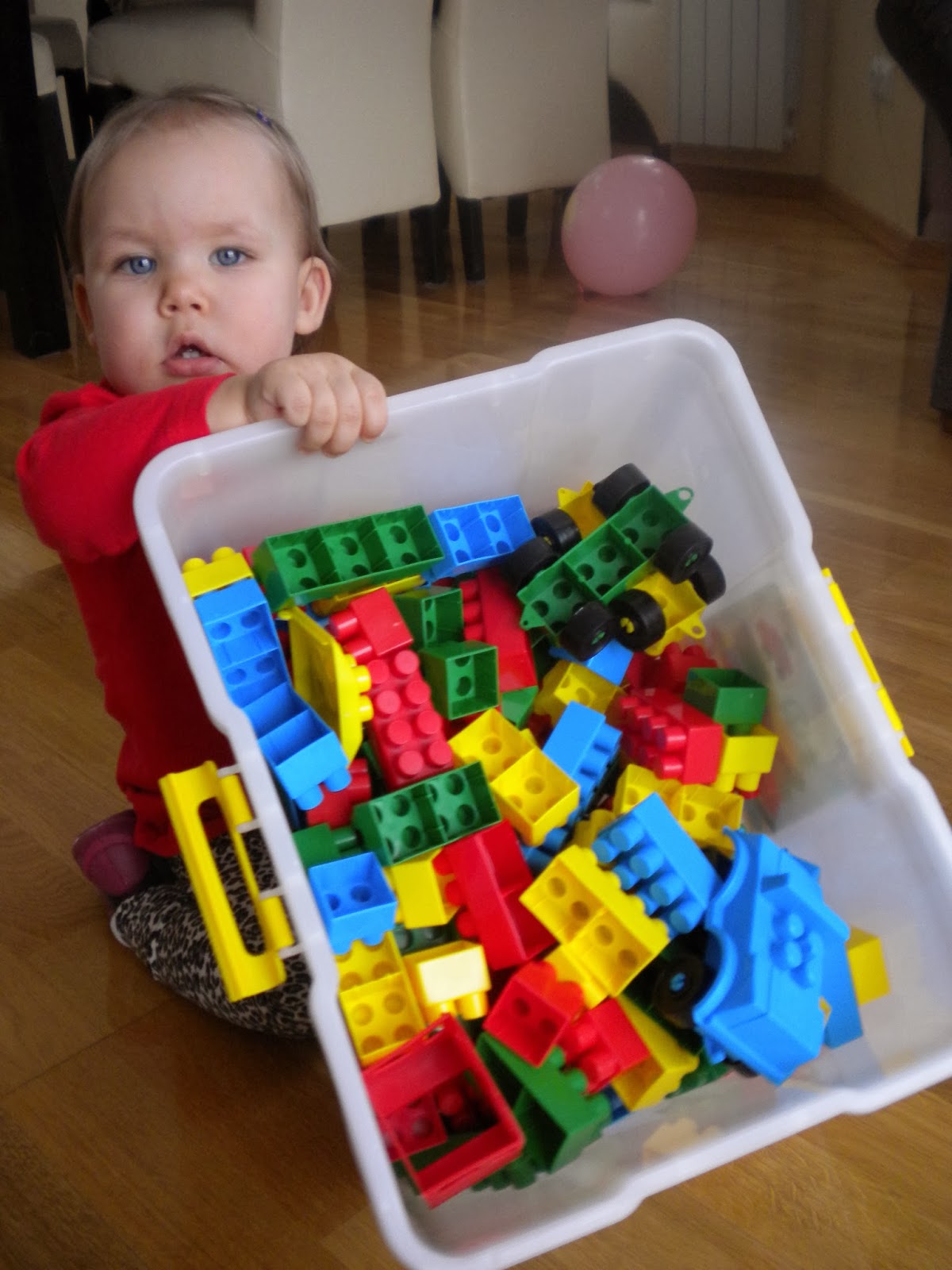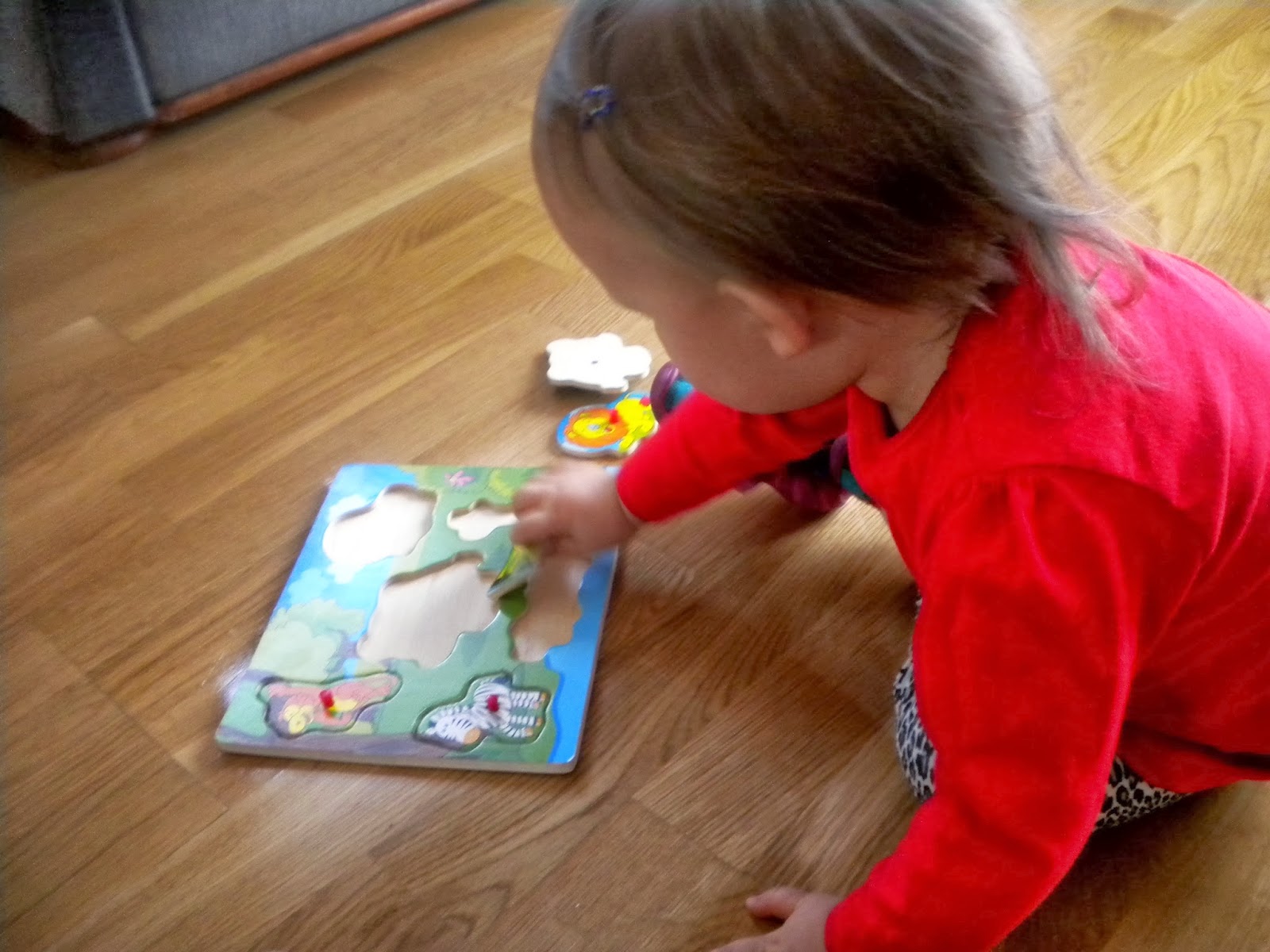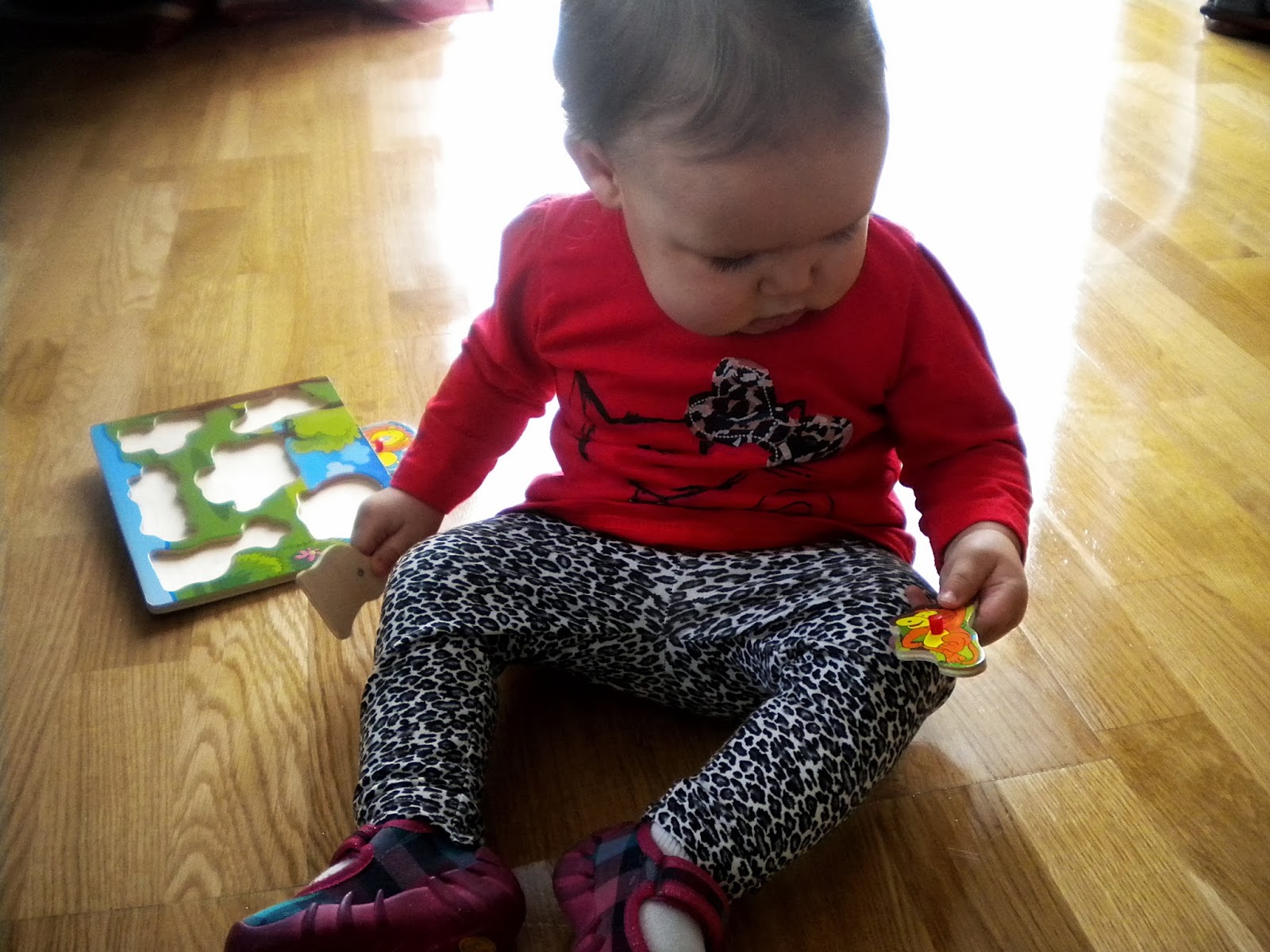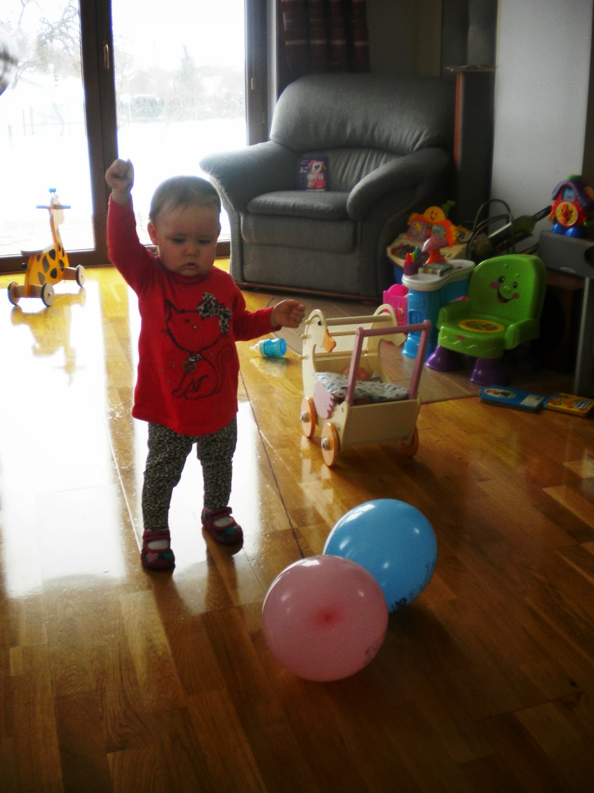 Klocki, puzzle, drewniany jeździk [nasz hit!] , zwykły balon pomagają Nam niezmiernie przetrwać tą okropną pogodę za oknem.