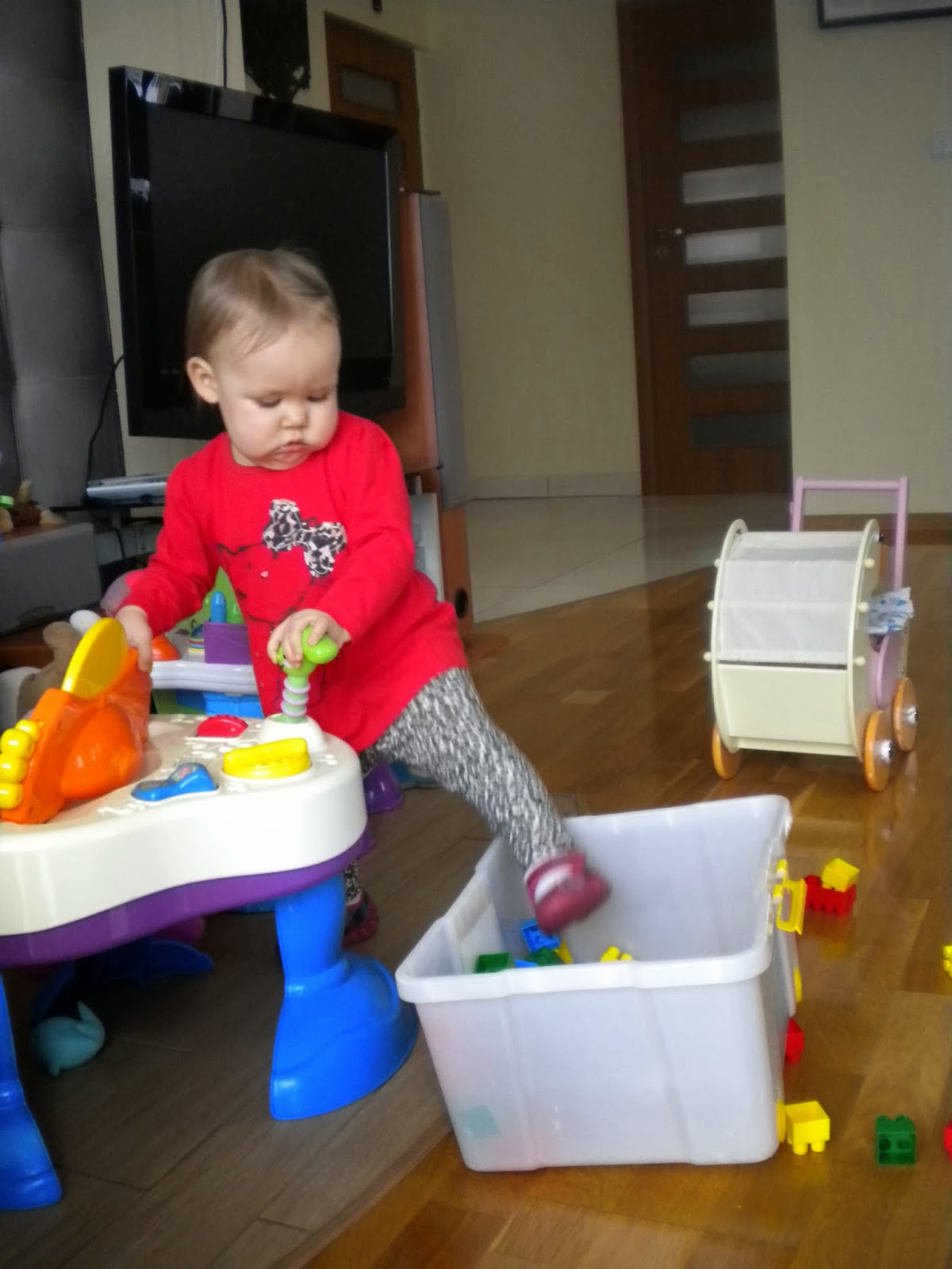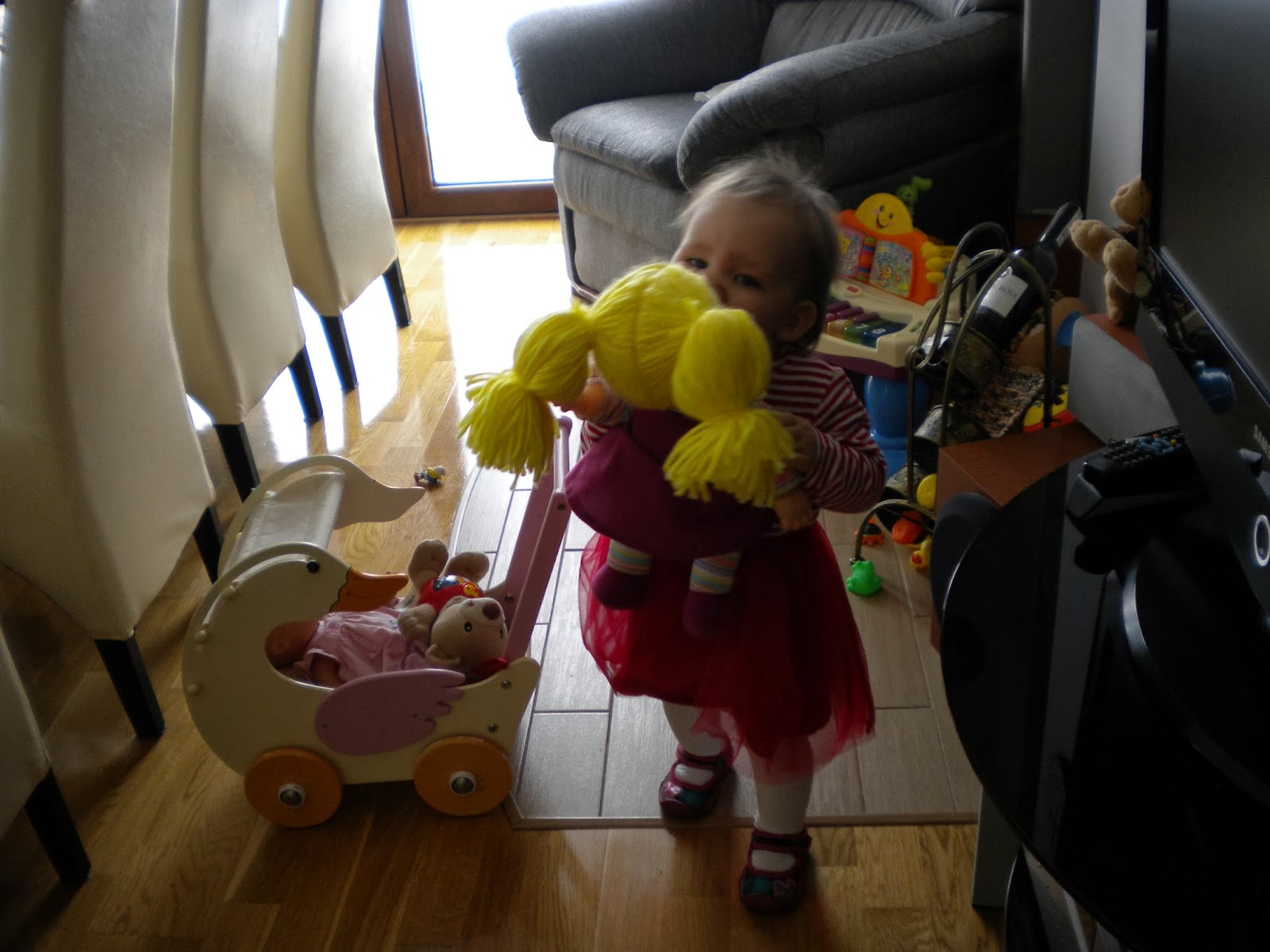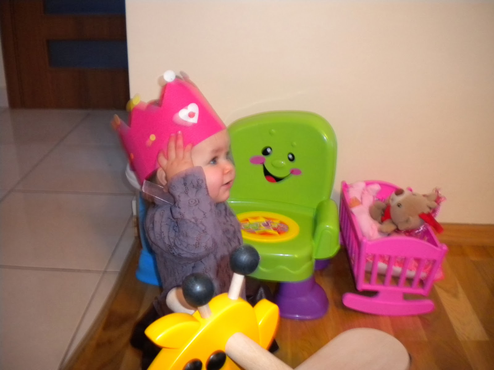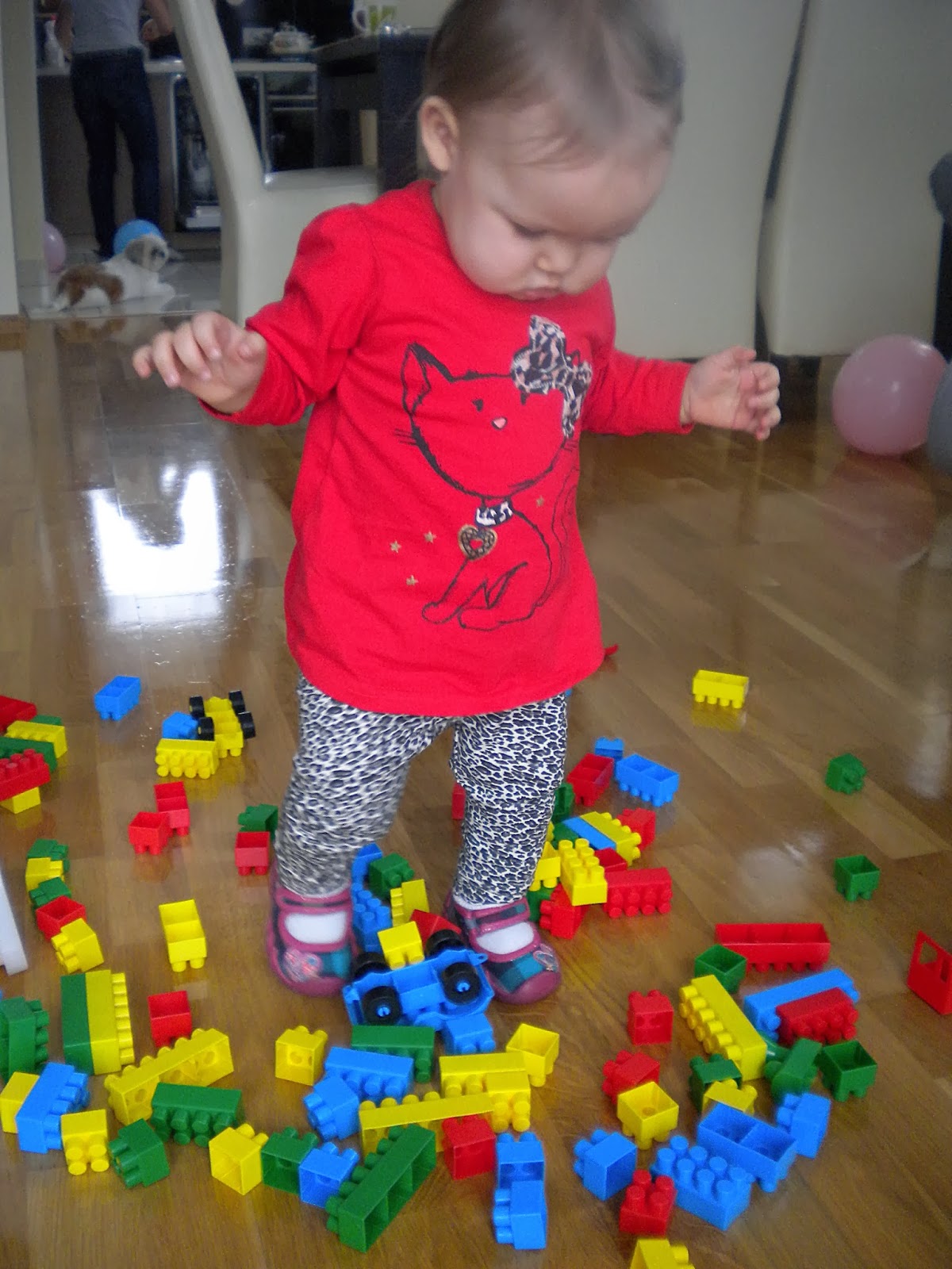Klocki, puzzle, drewniany jeździk [nasz hit!] , zwykły balon pomagają Nam niezmiernie przetrwać tą okropną pogodę za oknem.