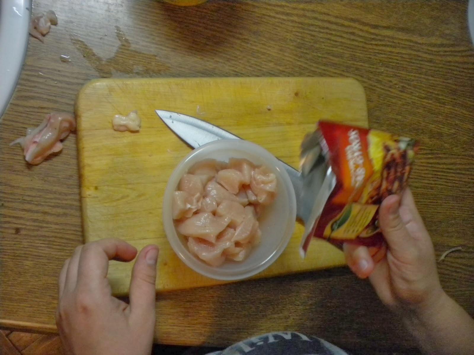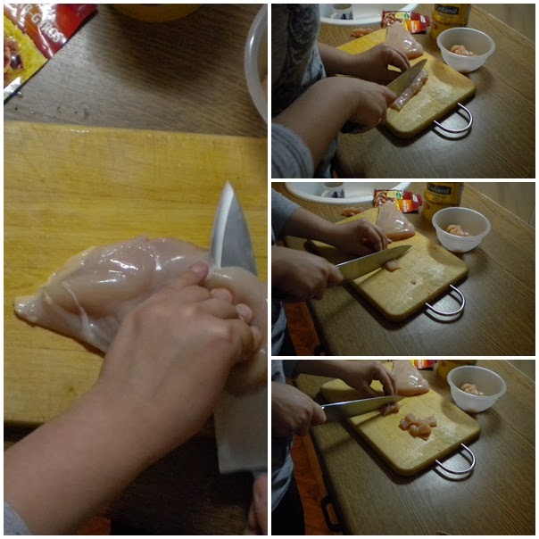 Oczyszczamy pierś, kroimy najlepiej w kostkę.