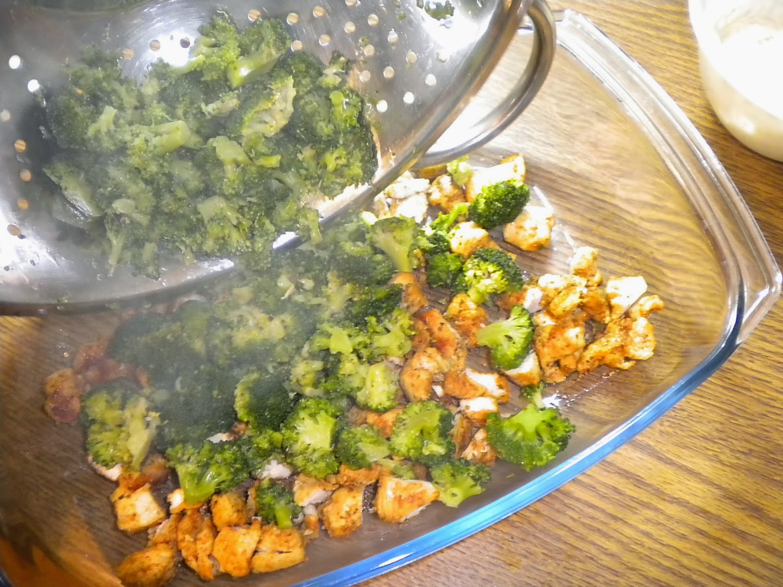 Ugotowaną brokułę, dokładamy do mięsa i delikatnie mieszamy.