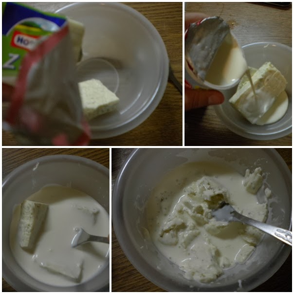 Serek topiony z ziołami łączymy ze śmietanką 30% [<-- mniej niż połowa ] i ucieramy. Tak aby powstała dość gęsta konsystencja.