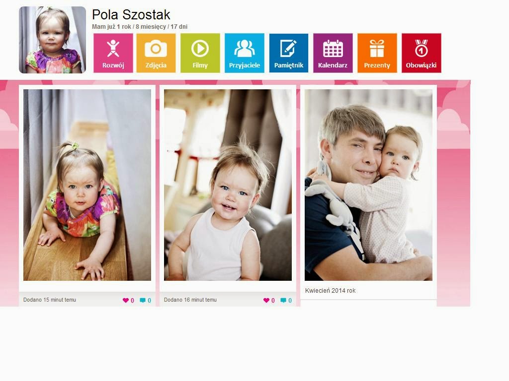 Jak dla mnie bardzo fajne i wygodne rozwiązanie! W jednym miejscu mogę sukcesywnie wrzucać zdjęcia, filmiki Poli, oraz dzielić się co nowego u niej słychać, jakie robi postępy, jaka przygoda jej się przytrafiła danego dnia, np. dziadkom, do których mamy niestety spory kawałek.