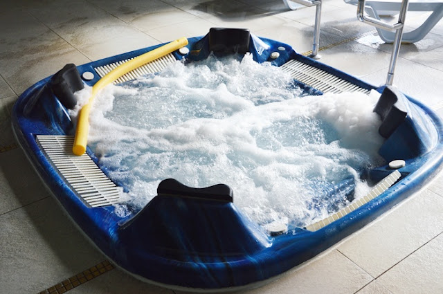 Dużą rozrywką był dla Nas również basen, jacuzzi oraz pomieszczenia z sauną morką i suchą, w której wytrzymałyśmy z Kasią kilka sekund, za to Nasi panowie zdecydowanie chcieli Nam pokazać, że są twardzielami i zostawili Nas na kilkanaście minut z maluszkami aby skorzystać z sauny. Na basenie są również specjalne pomieszczenia, w których wykonywane są zabiegi SPA z ogromnymi, specjalnymi wannami do masażu. My jednak postawiłyśmy na jacuzzi i tam spędziłyśmy czas. Pola oraz Kornelia popływały w dużym basenie a Olek dotrzymywał Nam wszystkim towarzystwa w wózku. Każdy miał chwilę przyjemności i mógł skorzystać z tego co najbardziej przypadło mu do gusty.