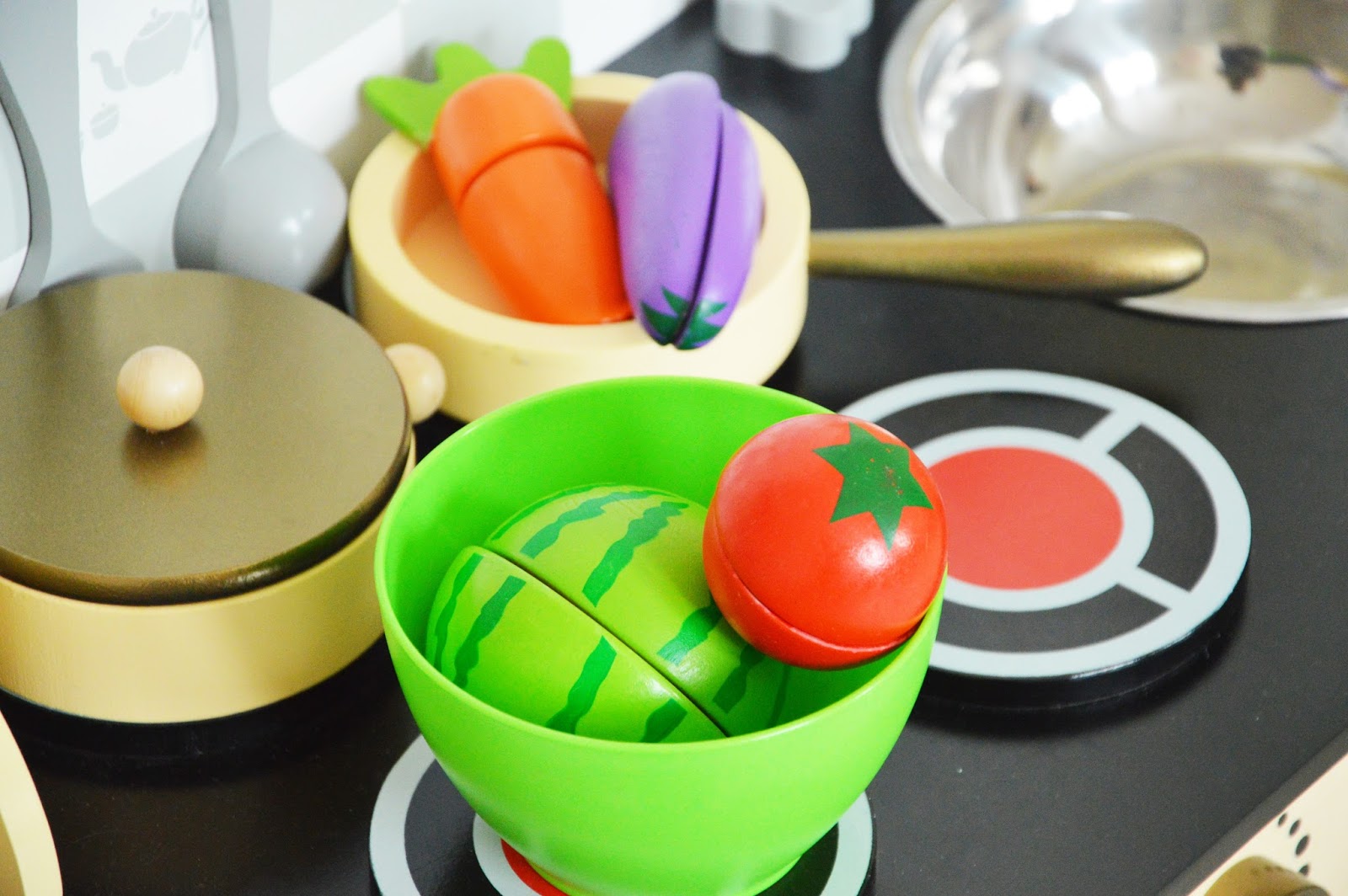 Przyznaje, że mam w domu małą kucharkę, która nie tylko wyciąga z szafki moje stare książki kucharskie i udaje, że kopiuje przepis na talerz, ale przede wszystkim sprawia jej to tyle radości, że z wielką chęcią dokupujemy jej akcesoria. Do zabawy dołącza także młodszy brat, więc jest dla kogo gotować! :)