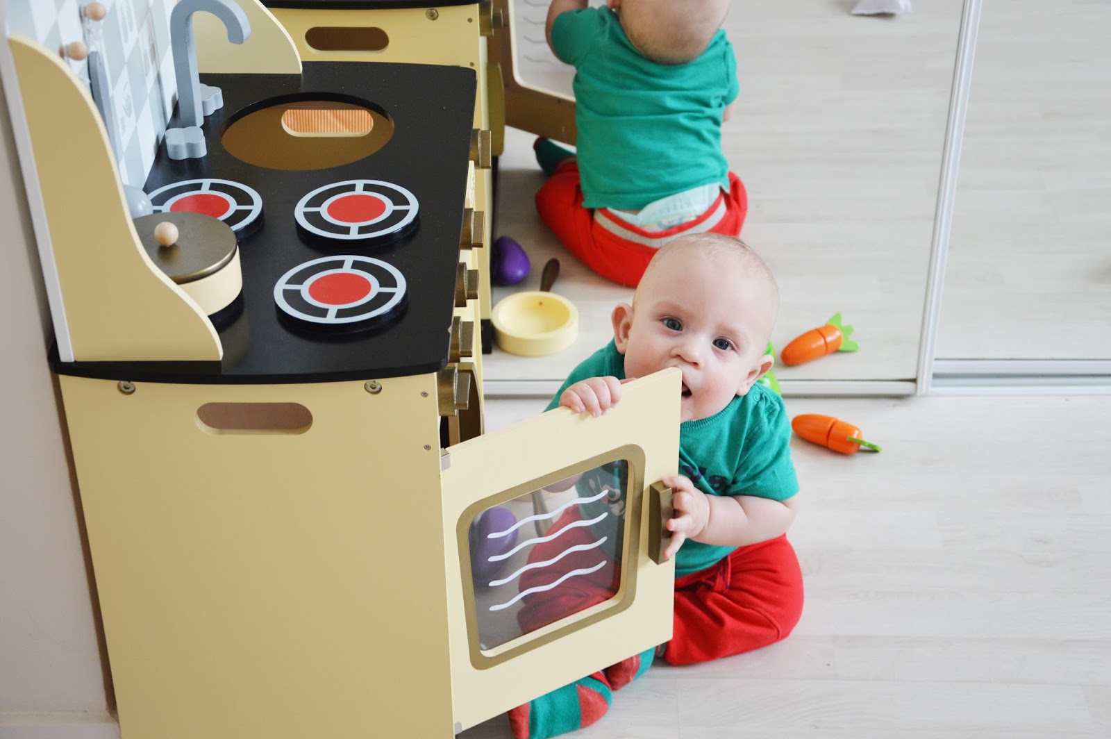 I chociaż pokój dzieciaków jest mały, kuchenka znalazła swoje miejsce. Bardzo jesteśmy zadowoleni z jej zakupy, ze względu na jakość oraz wyposażenie. Poza tym jest ładna i nie zajmuje dużo miejsca, co przy takich drewnianych gadżetach wydawałoby się niemożliwe. O dziwo bardzo sprawnie się ją składa, co jest również dużym plusem!