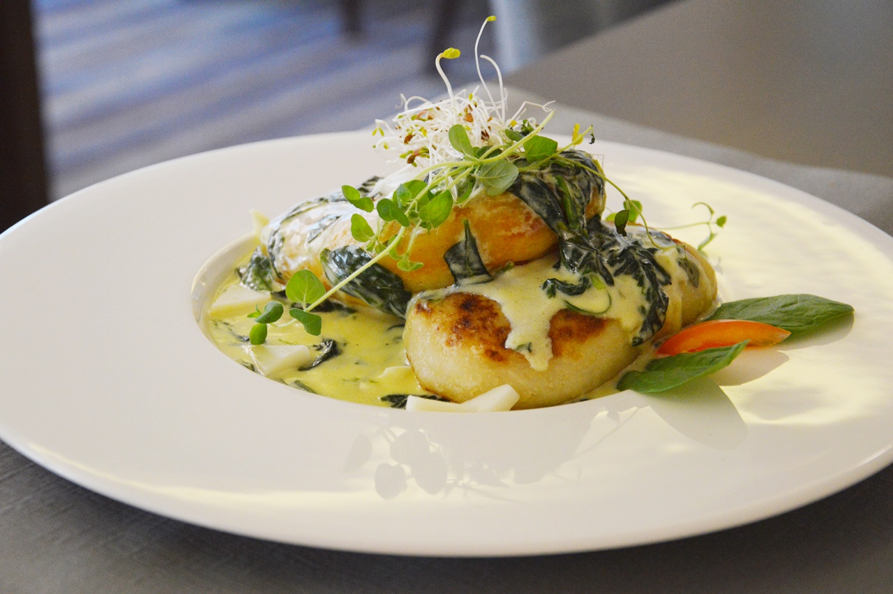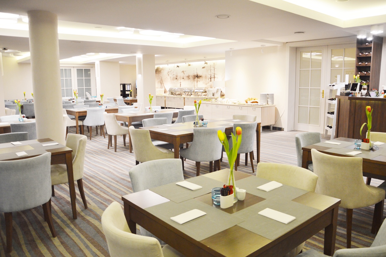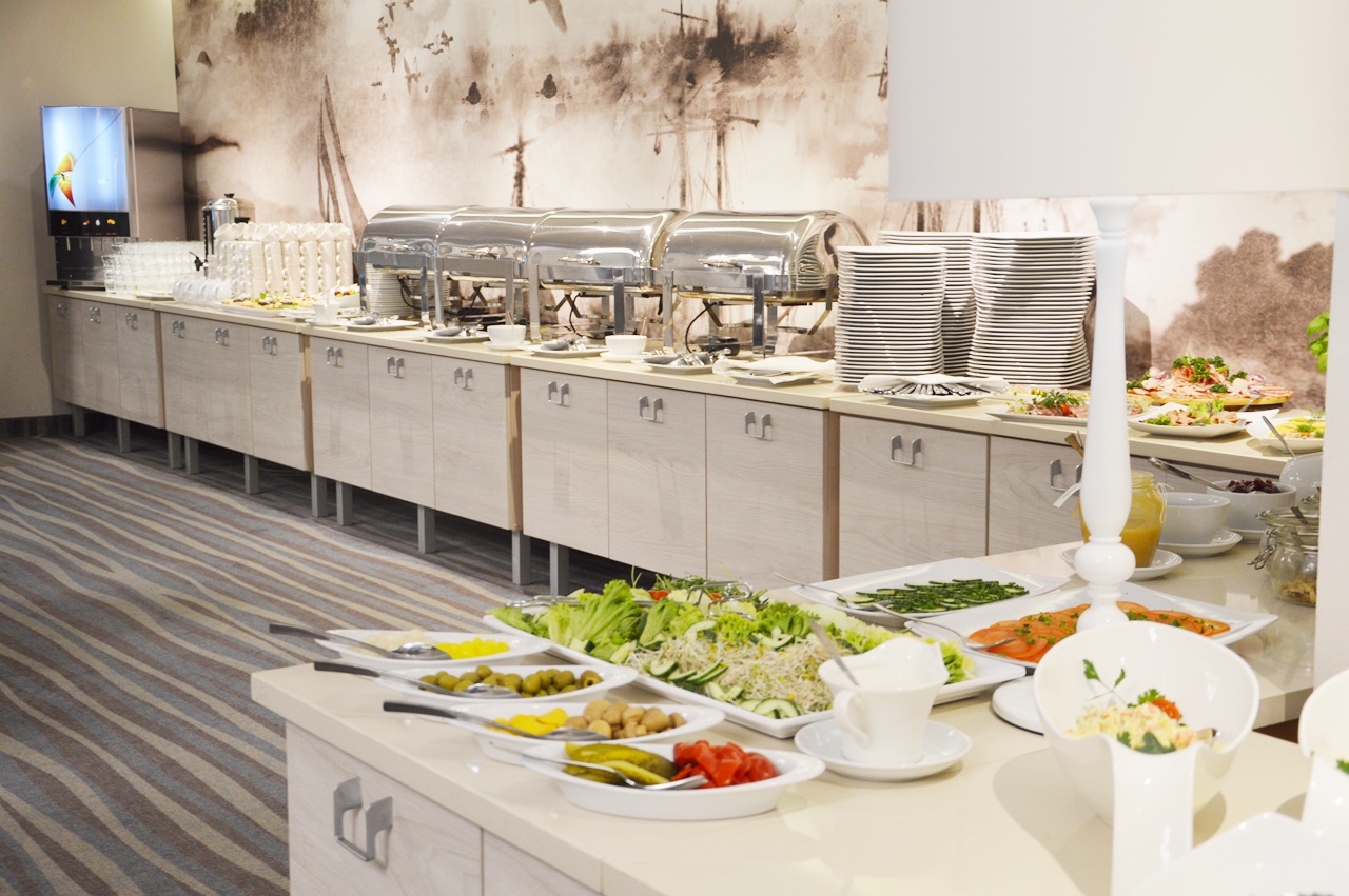 Kuchnia regionalna, wszystko smaczne i przede wszystkim świeże. Duży plus za przepyszne sałatki i prawdziwy domowy twarożek ze szczypiorkiem. Pola oczywiście zajadała się naleśnikami, które szybko znikały z jej talerza. Na pochwalę zasługuję również pomysł z umieszczeniem sprzętu do parzenia kawy. Oprócz aromatycznej kawy można było zaparzyć sobie prawdziwą czekoladę czy biała kawę. Na śniadaniu nie zabrakło oczywiście małego deseru, w postaci kruchych babeczek z kremem bądź ciasto jogurtowe, na które skusiłam się bez jakichkolwiek wyrzutów sumienia. Tak naprawdę na te 3 dni całkowicie odłożyłam dietę na bok :) Na obiady chodziliśmy ok. 18 gdzie czekały Na nas zupy oraz ciepłe dania, m.in smażony dorsz, drobiowe pulpeciki czy grilowaną pierś z kurczaka w sosie brzoskwiniowym. Dodatkowo mieliśmy możliwość skorzystać z menu w restauracji, gdzie mieliśmy okazję zjeść tak pyszny krem z pomidorów z bruschettą i chipsem serowym, a także pierogi z duszoną wieprzowiną, kozim serem i szpinakiem. Ceny adekwatne do dużej porcji, której ja nie byłam w stanie zjeść do końca. Na deser nie obeszłoby się bez domowego sernika z konfiturą z jeżyn.