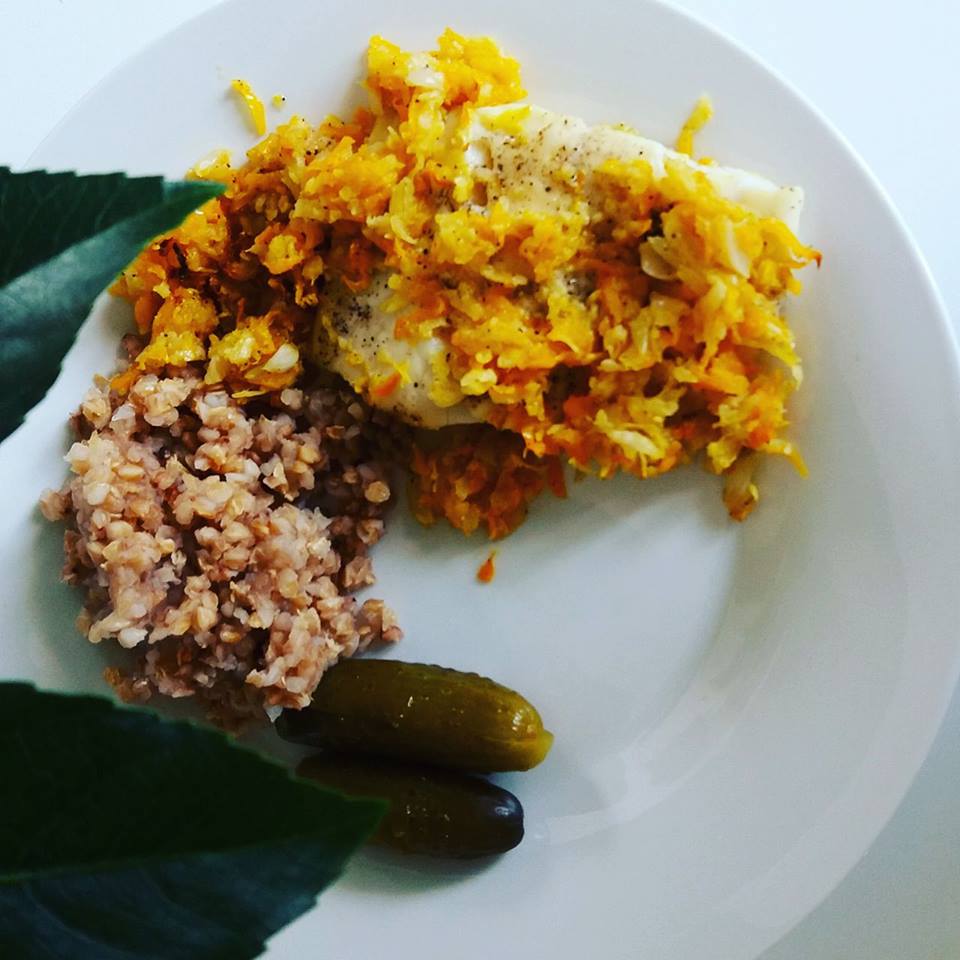 2. Dorsz z warzywami, kaszą gryczaną i ogórkiem kiszonym