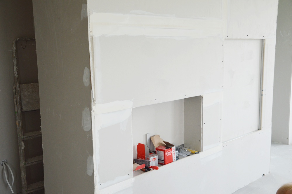 Salon to jedno z pomieszczeń, które od samego początku wiedzieliśmy jak będzie urządzone. Nasz salon ma ponad 37 metrów i jest podzielony na 3 strefy (strefa jadalniana, strefa wypoczynkowa i strefa telewizyjna), wobec tego musieliśmy starannie przemyśleć ich rozmieszczenie. Staraliśmy się, aby gniazda w każdej ze stref salonu umożliwiały nam wygodne i bezpieczne korzystanie. W pomieszczeniach, gdzie wydzielone są strefy zawsze trzeba montować więcej gniazdek. Zasada głosi, że na każde 5 metrów pomieszczenia powinno znaleźć się jedno gniazdko. W strefie telewizyjnej zaplanowaliśmy ramkę wielokrotną, w której umieszczone zostanie gniazdo wtyczkowe, antenowe i teleinformatyczne. W strefie wypoczynkowej- dwa podwójne gniazda np. do podłączenia lampy podłogowej. Natomiast w strefie jadalnianej, na wysokości 0,3metra od podłogi zamontowaliśmy jedno gniazdo podwójne.