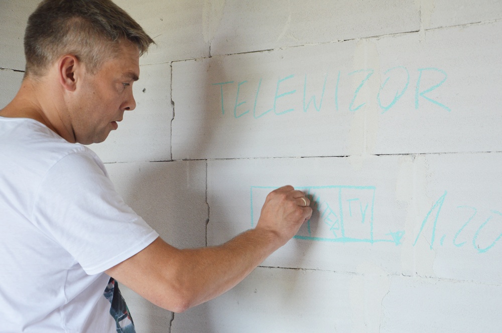 - Na kartce zapisywaliśmy sobie ilości gniazdek, włączników i wszystkie ważne ustalenia