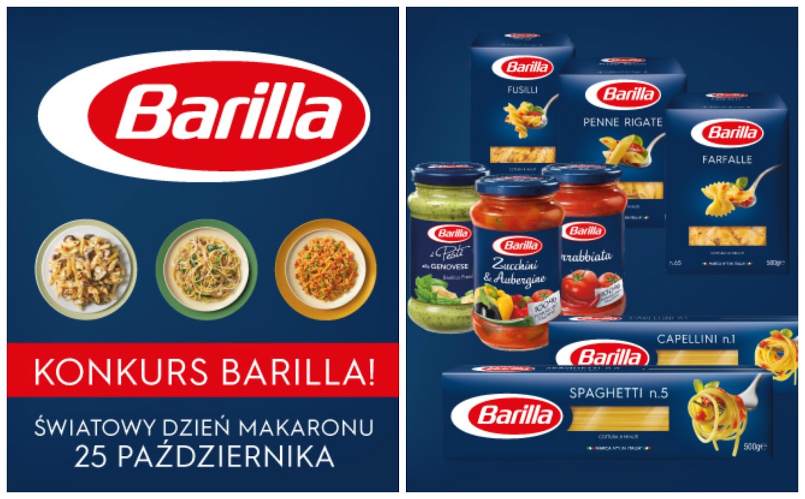 wtorek, października 25, 201625 października obchodzimy Światowy dzień makaronu. Dobrze ugotowana pasta jest wyśmienitym składnikiem do przygotowania smacznego i pożywnego posiłku. Jako miłośniczka makaronów razem z marką Barilla, przygotowaliśmy dla ciebie konkurs.