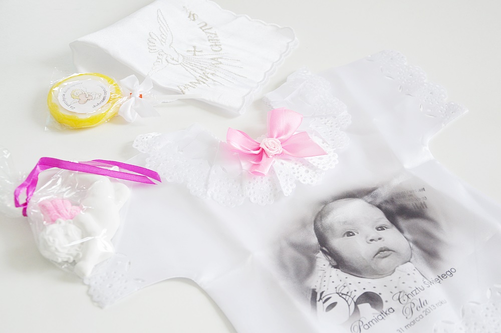 - Podziękowania dla gości (gipsowy aniołek oraz lizak) z chrztu oraz szatki z chrztu