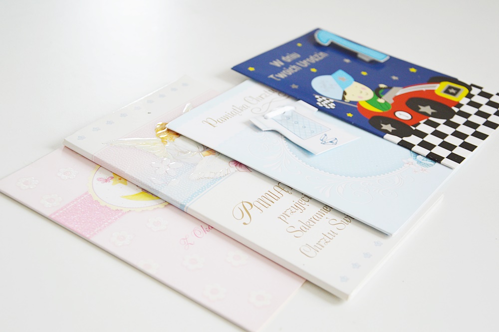 - Karki z gratulacjami narodzin, chrzcin i pierwszych urodzin