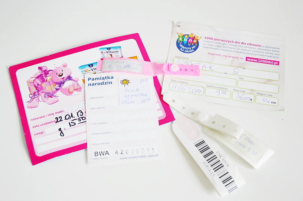 - Kartki z imieniem i nazwiskiem oraz płcią dziecka
